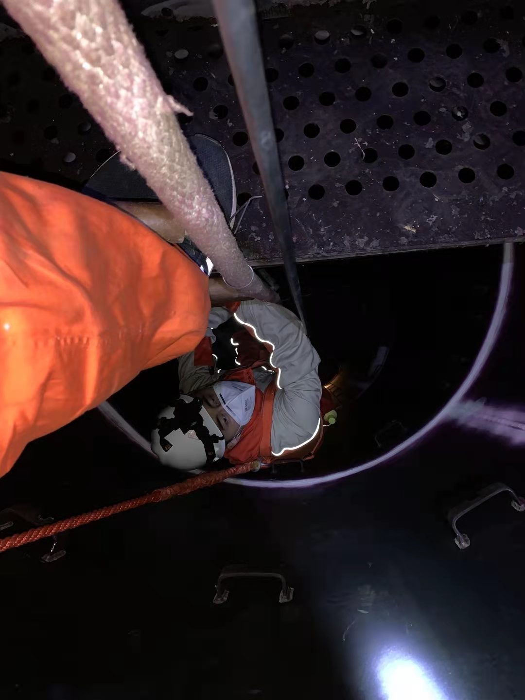 由于尿塔結(jié)構(gòu)的特殊性,高度高、直徑小、塔盤密集,并且氣味很刺鼻,尿塔的檢驗難度很高。在檢驗過程中,檢驗人員要頭帶安全帽及頭燈、面帶口罩;胸口裝著對講機(jī)和氣體探測儀;腰上系安全繩掛防毒面具;褲子兜里帶著檢驗檢測儀器,在這種工作條件下,檢驗人員按照先前制定的檢驗方案,嚴(yán)格把關(guān),為企業(yè)排除了諸多安全隱患。檢驗人員在工作中所表現(xiàn)出的專業(yè)技術(shù)水平和吃苦耐勞工作作風(fēng)充分展示了我公司特檢人的特檢精神及風(fēng)貌。得到了企業(yè)的肯定與好評!