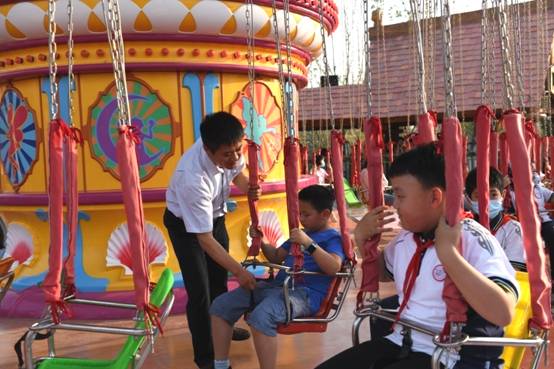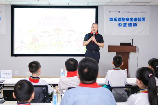 國(guó)投山東省特檢院有限公司游樂設(shè)施安全專家與學(xué)生互動(dòng)講解安全知識(shí)
