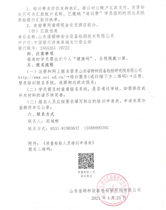 2021年第一期質(zhì)量檢驗(yàn)人員培訓(xùn)通知